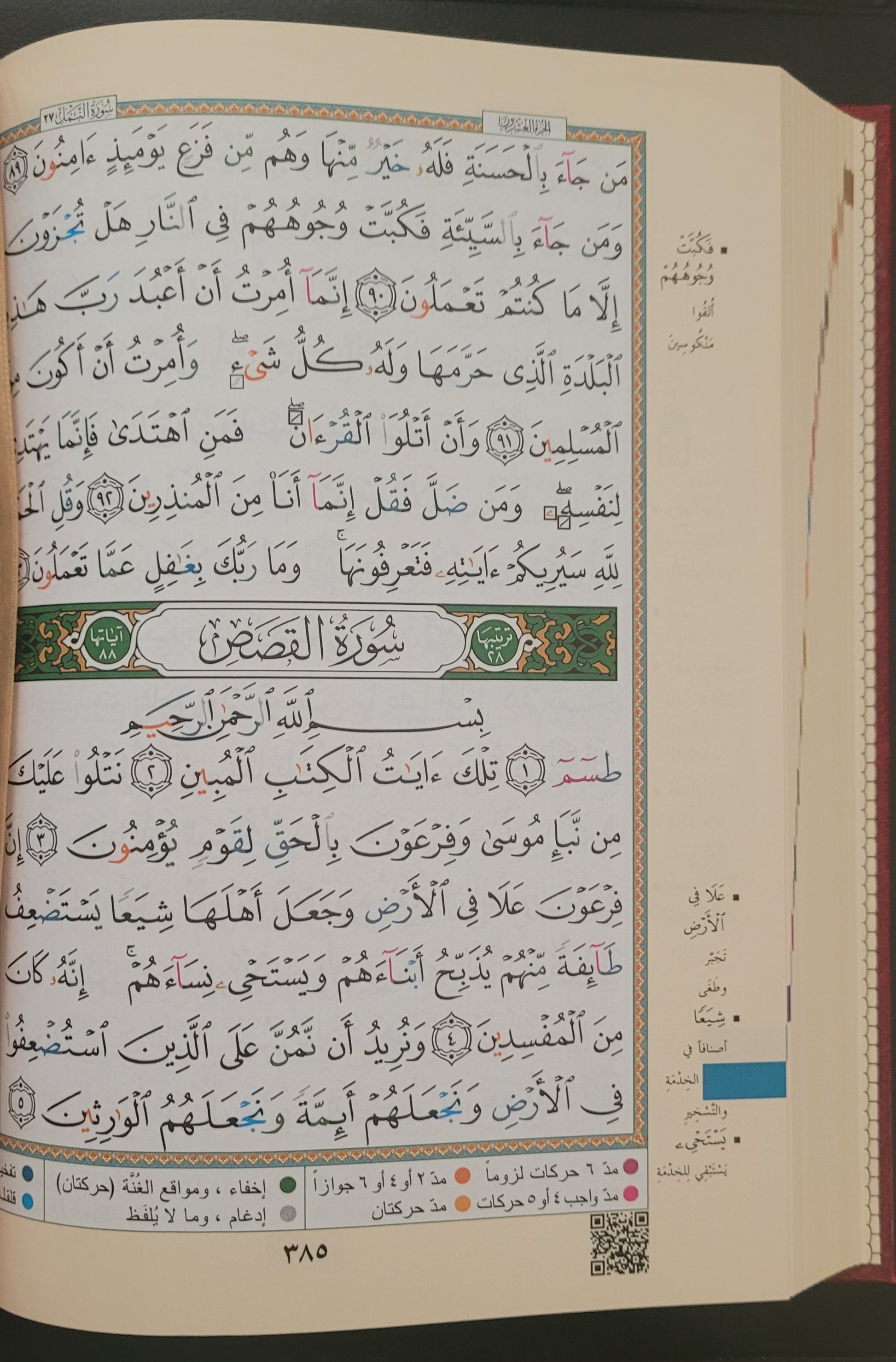 Reading of Hafs. Medium size Quran. Tajweed color coded rules included