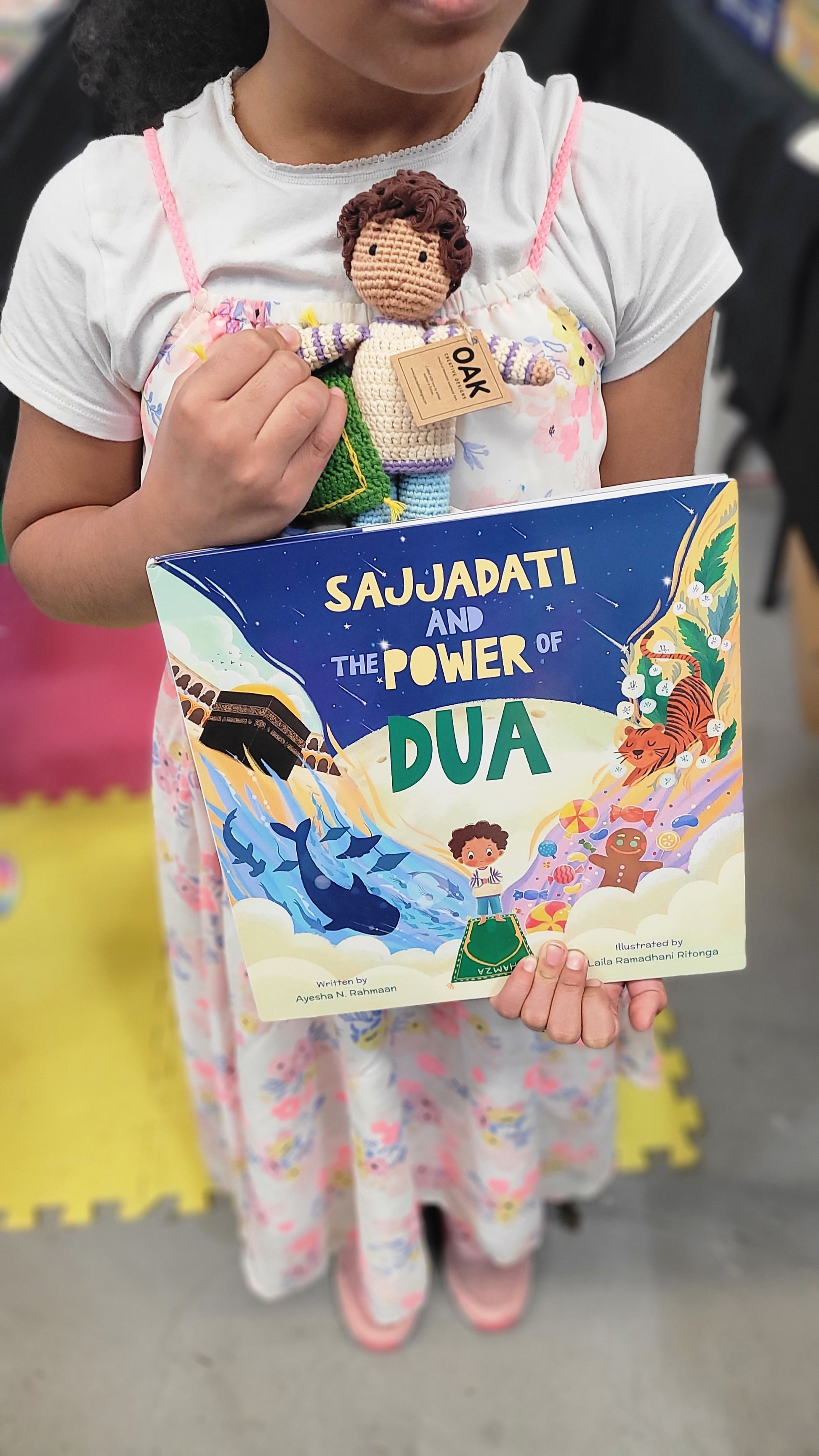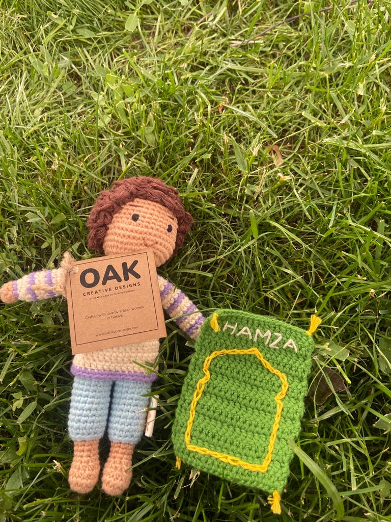 Super cute, handmade Hamza doll and prayer mat (sajjadah). Now your little one can enjoy playing for hours on end with Hamza doll as they read from one of their favroite books, Sajjadati and the Power of Dua.
