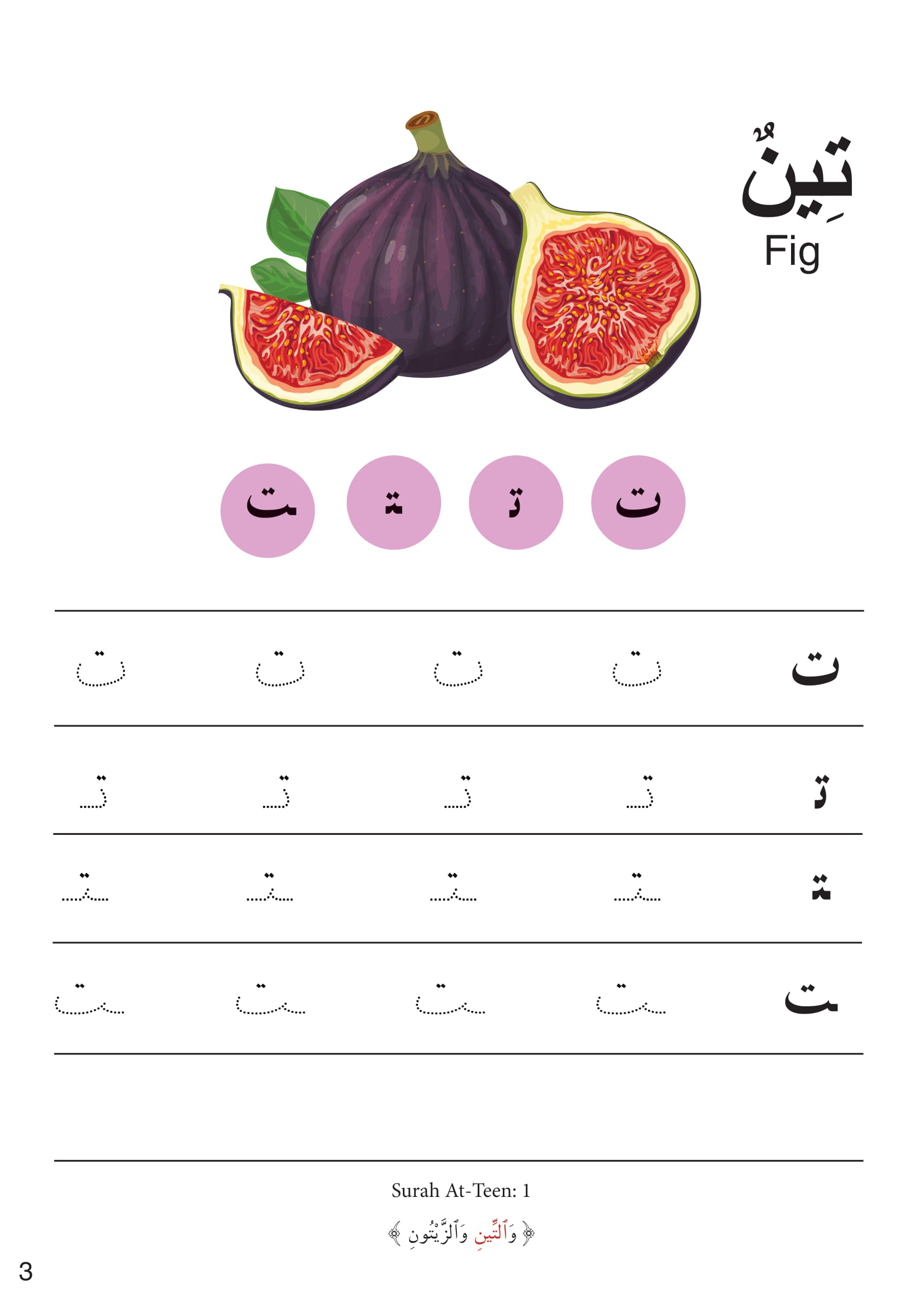 My Quran Alphabet workbook is a stepping stone designed to bridge the gap between a child reading Quran without understanding to gearing your child with the fundamental foundations in building a basic understanding of words mentioned in the Holy Quran.